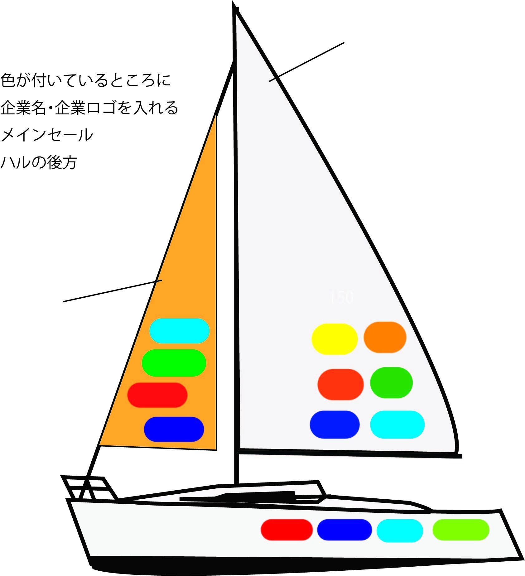 メインセール(帆)に企業名または、企業ロゴ=290万×6社