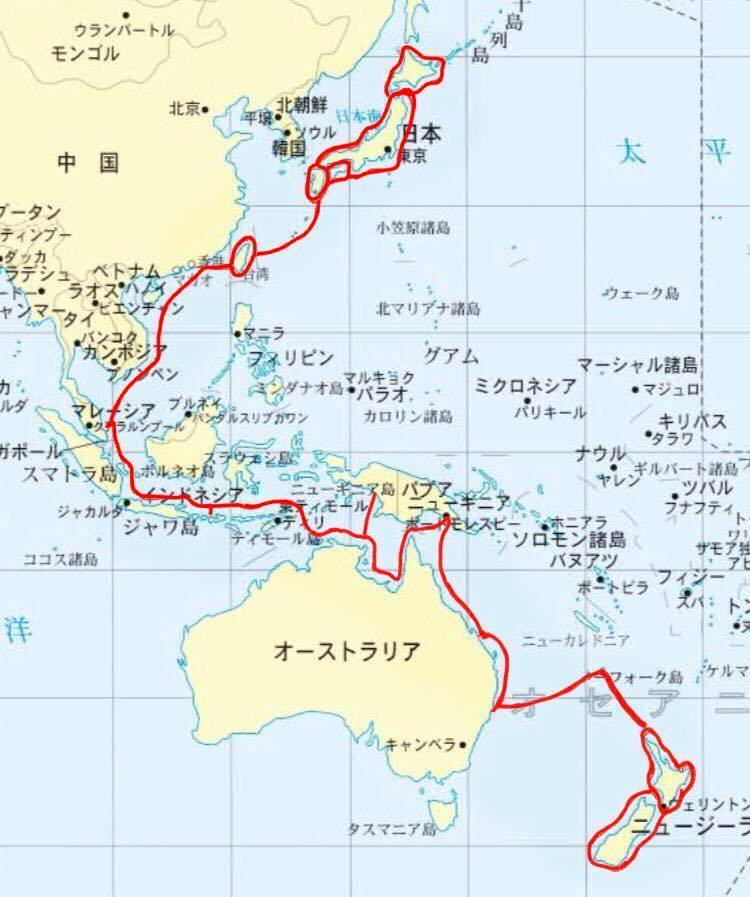 台湾から香港、ベトナム・カンボジア・タイ・マレーシア・シンガポール・インドネシア・東ティモールへ。島々を周りパプアニューギニアへ。そしてオーストラリア入り、ニュージーランドを目指します。各国で個展を開催します。 (国、航路変更する可能性有)