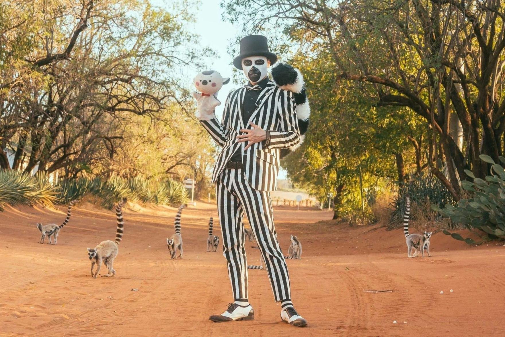 私は、「絶滅体験レストラン」を企画・制作の代表をしております、絶滅危惧動物のワオキツネザルをモチーフにした司会者です。
