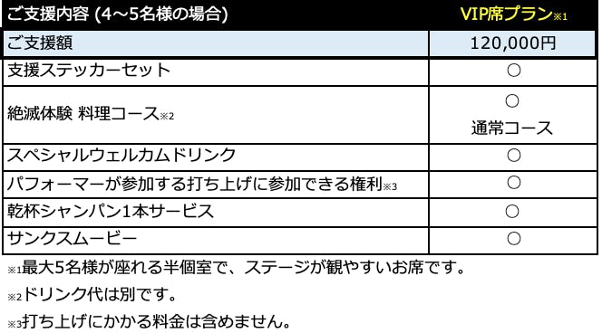 ※ご支援(ご予約)の状況で、お席が追加されることがございます。
