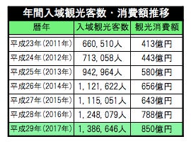↑ここ5、6年で観光客数、消費額は2倍以上となっており、市場規模・成長性共に十分であると考えられます。