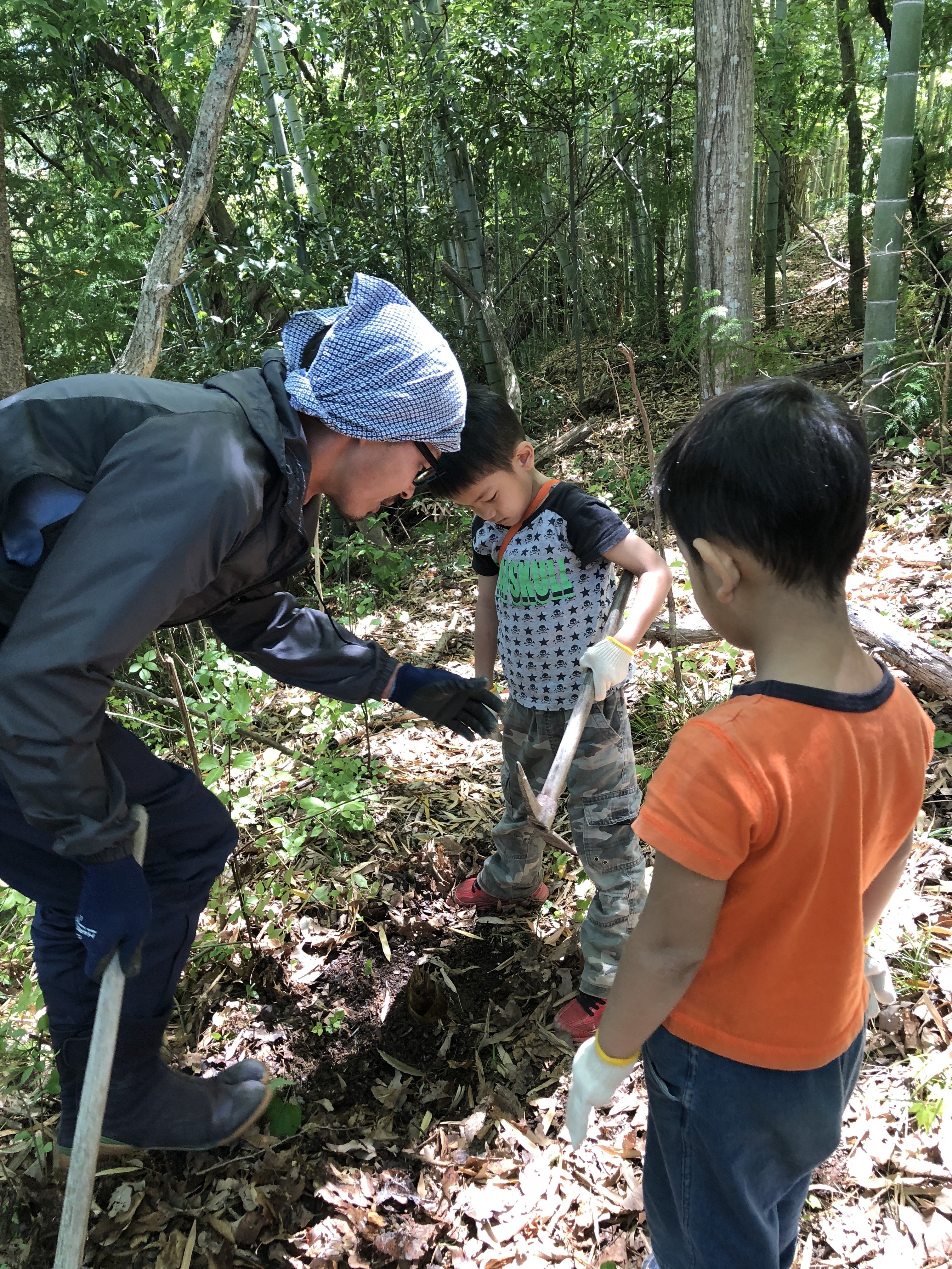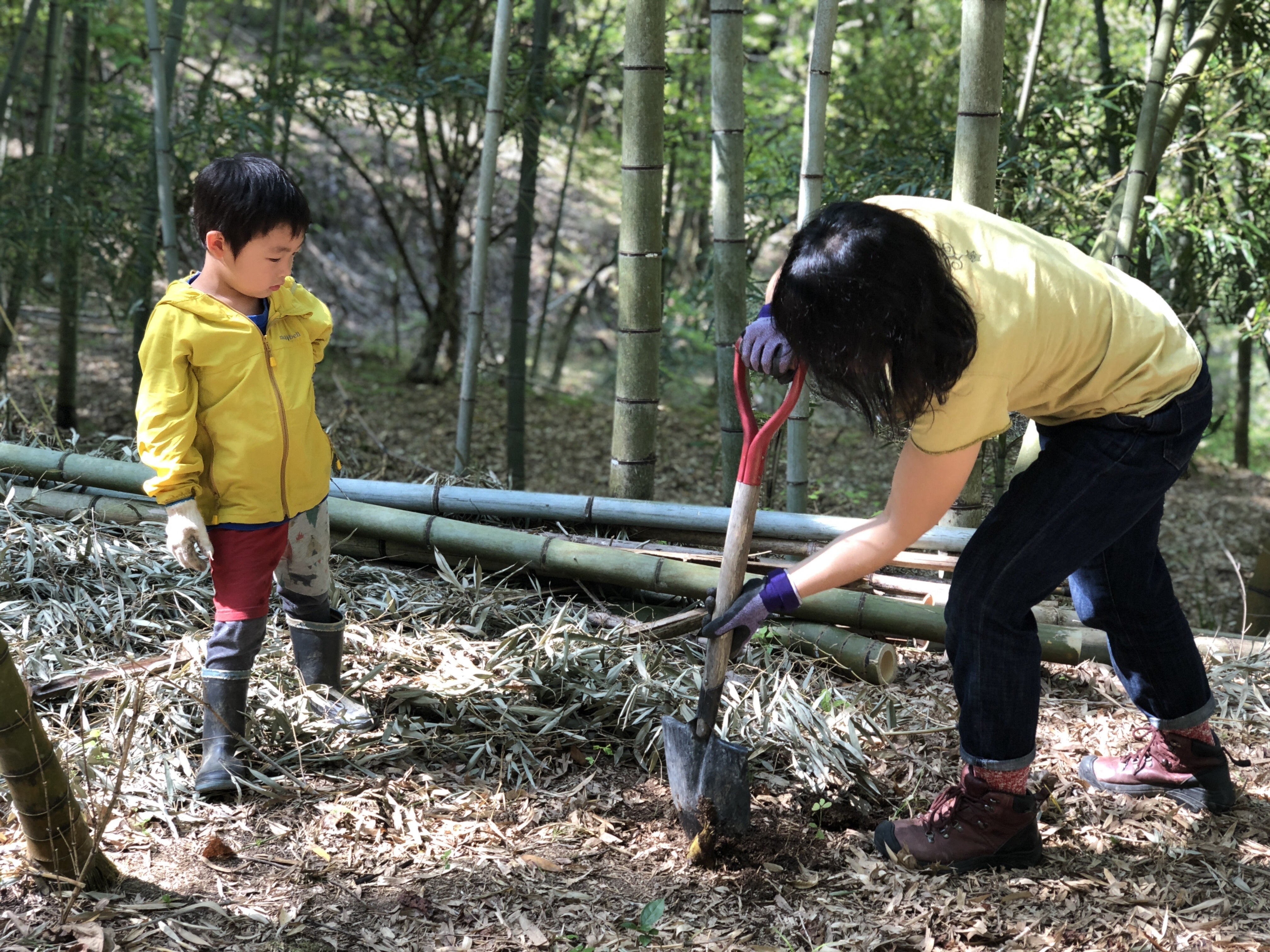 春のタケノコ堀りに大人も子どもも夢中になります。