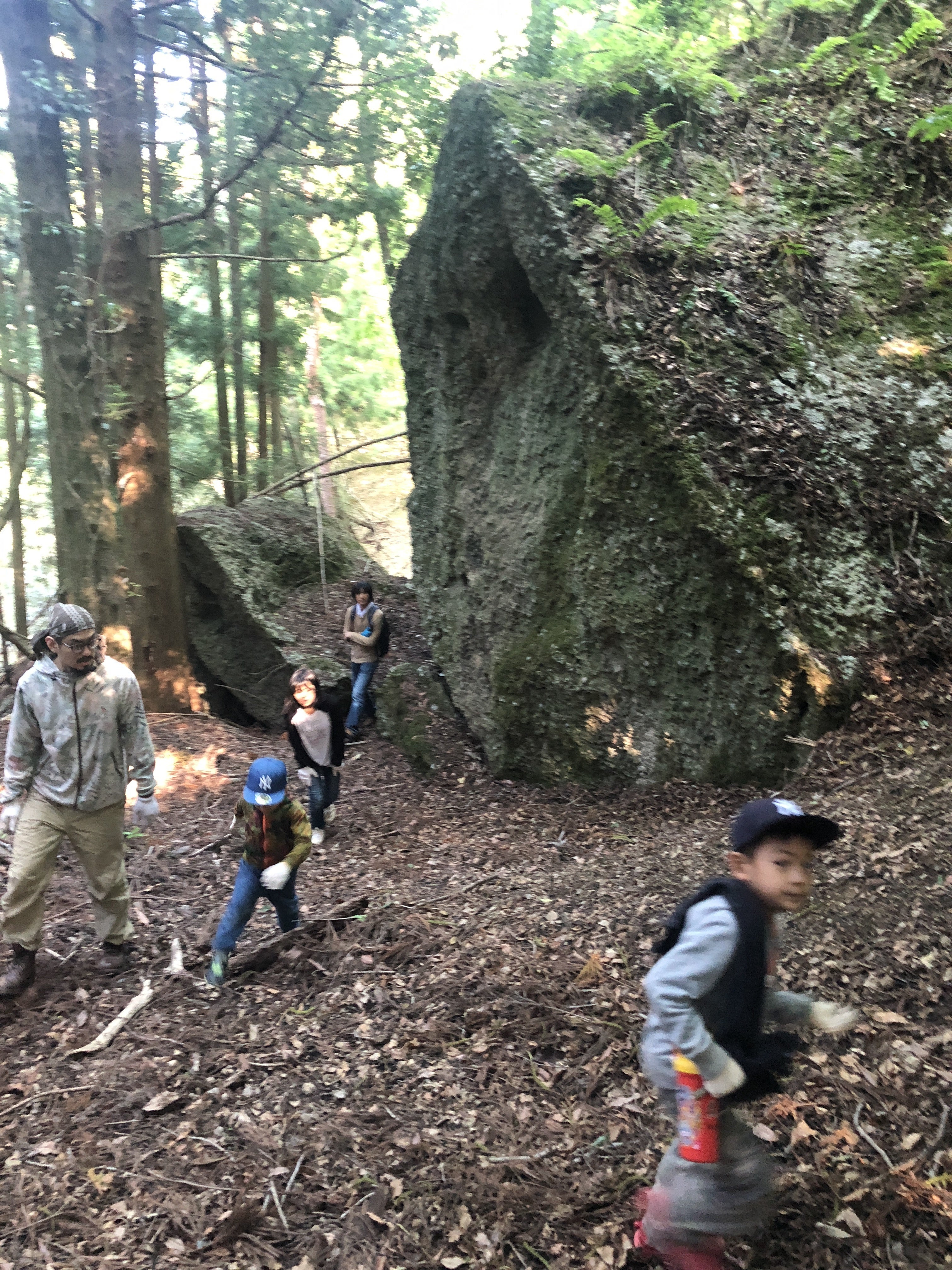 大人も子どももワクワクする"探検"。難易度上級の巨石コースは、晴家の森の奥にたたずむ巨石を目指して山歩きです。
