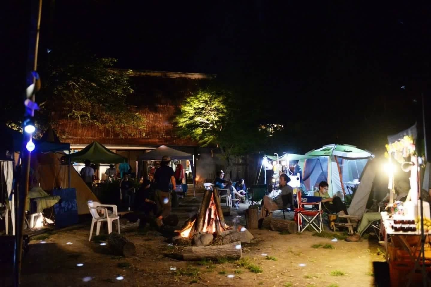 晴れた夜には、焚火を囲みながらのキャンプ。
