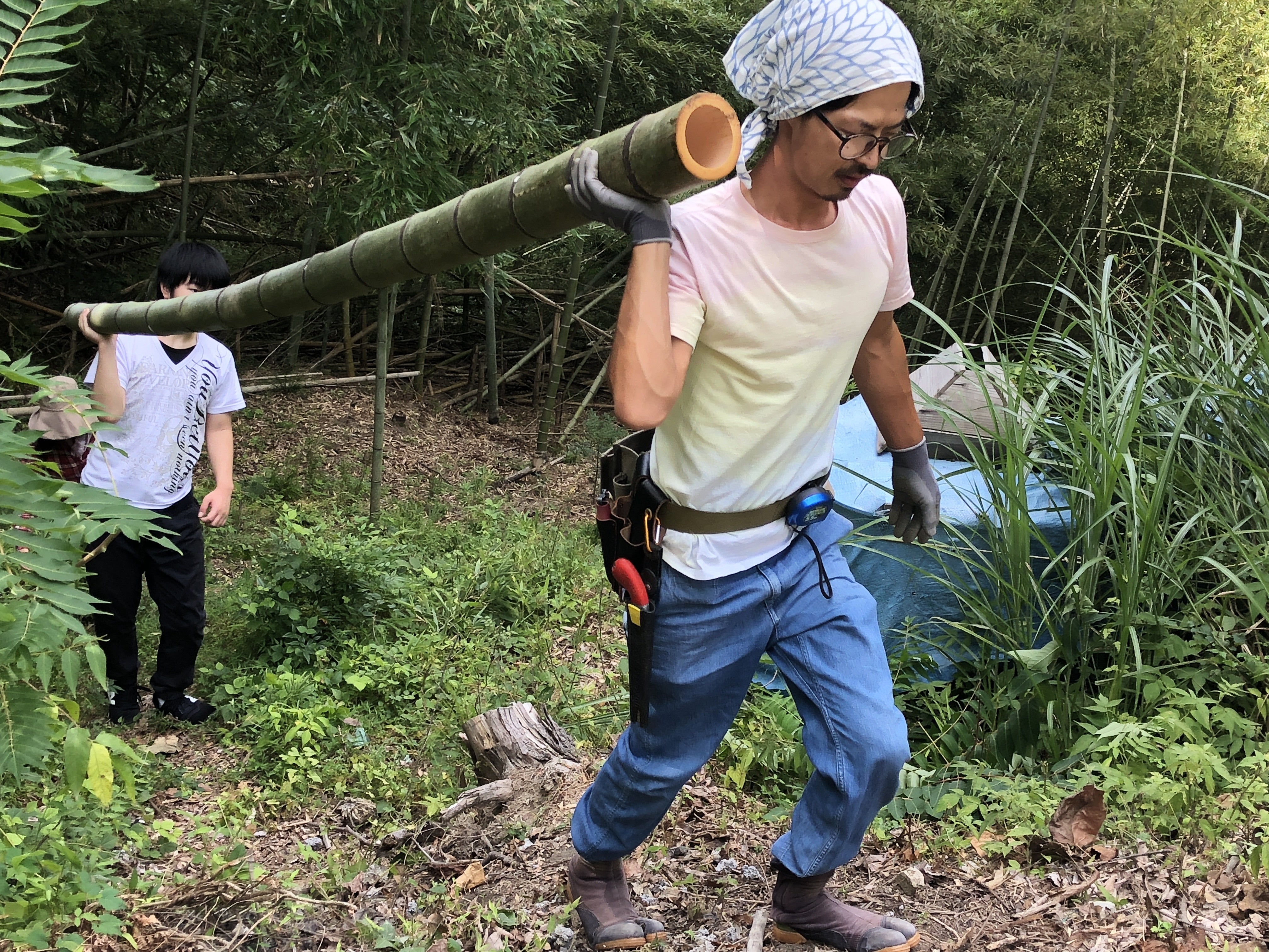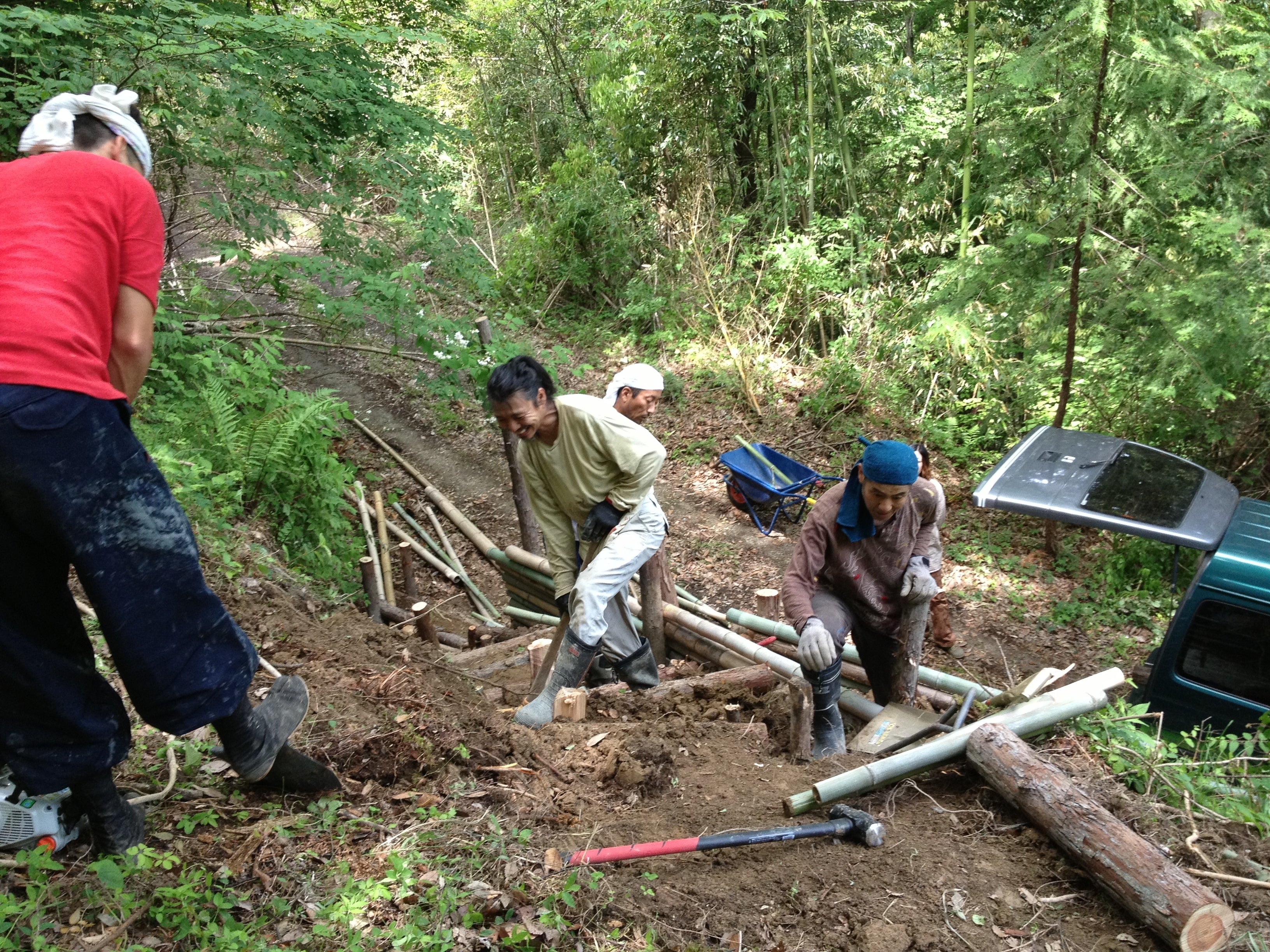 道を整備し、木や竹を伐採。その材料で古民家を改築しゲストハウスに。