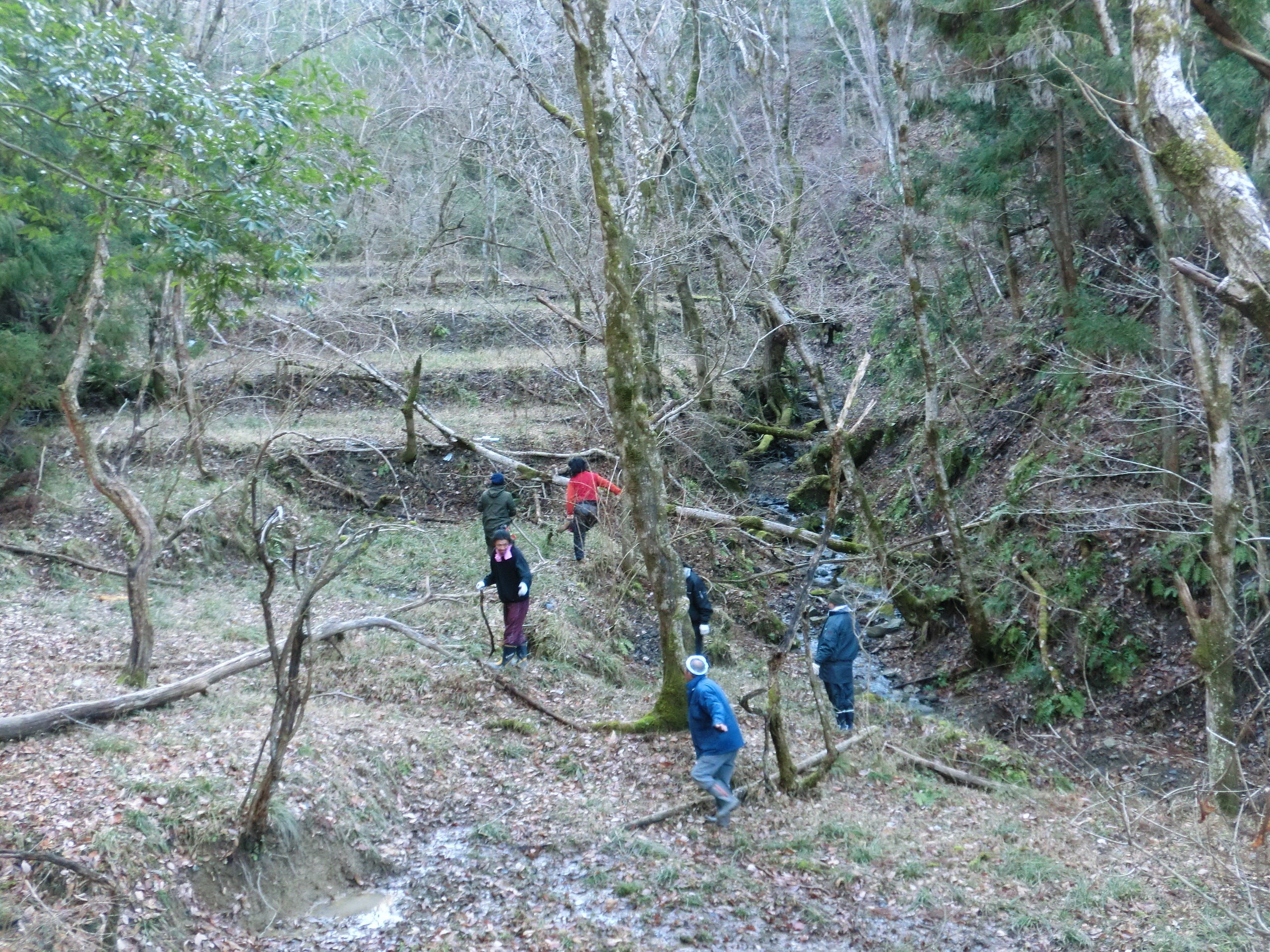 竹林を抜けて、沢コースを歩くとかつての棚田が広がります。