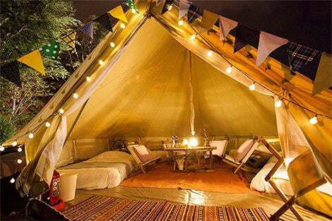 ウッドデッキ上にラグジュアリーな大型テントを設置して、これまでのキャンプのイメージとは違った感動をお伝えしたいと思います。