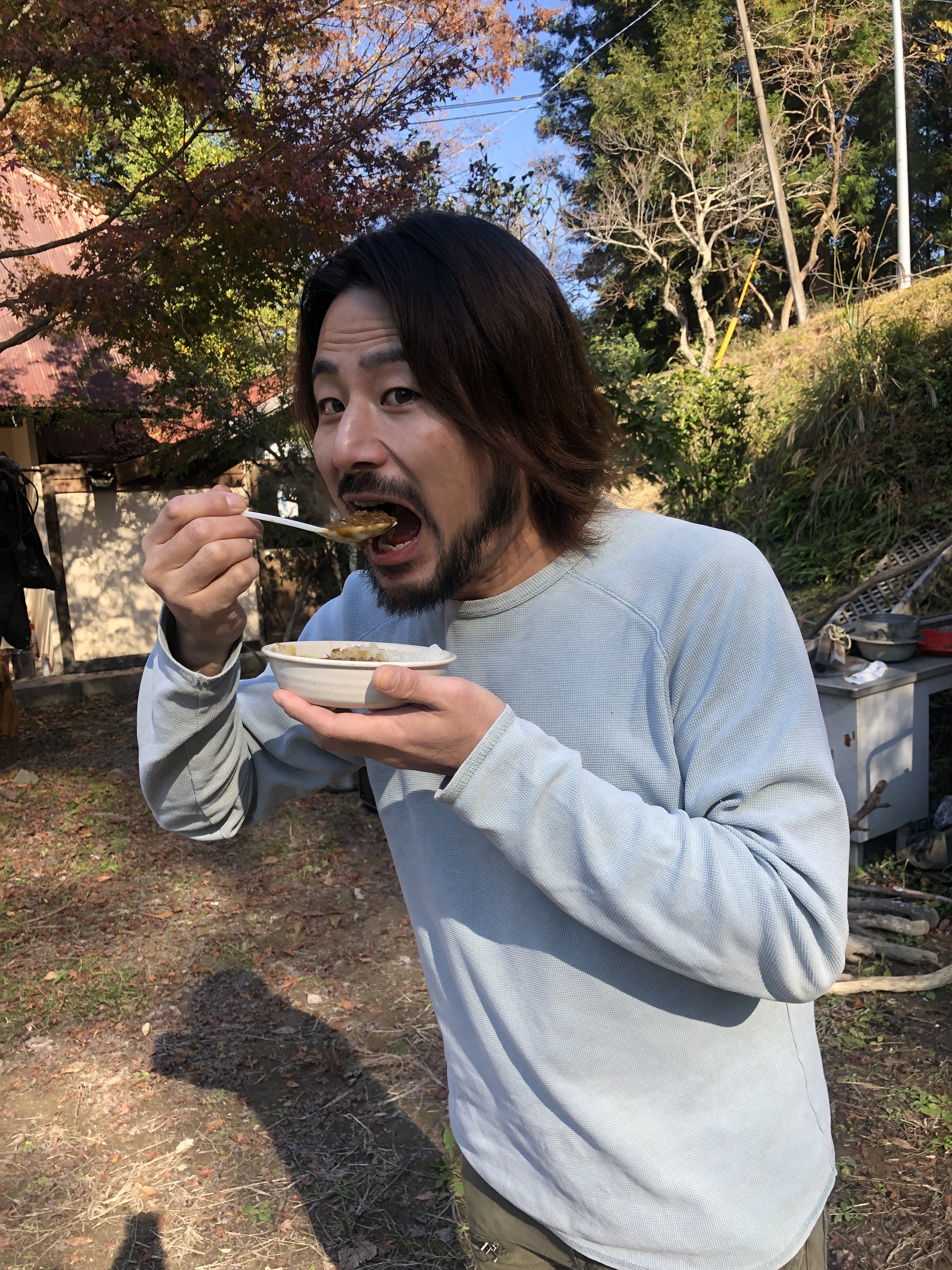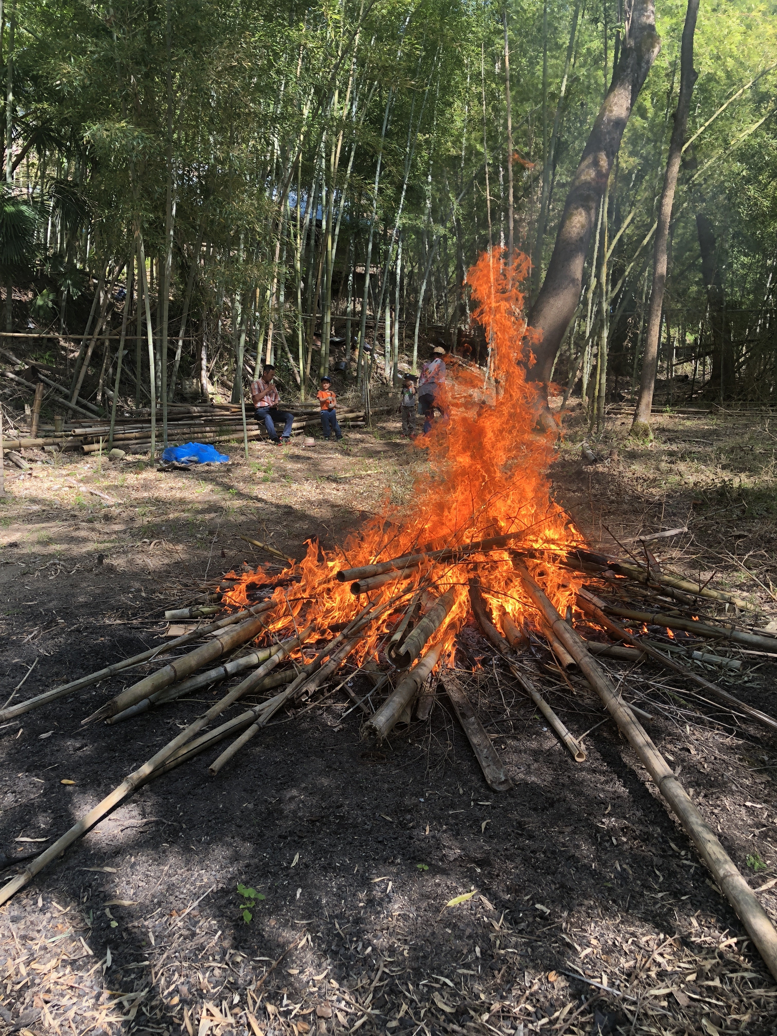 毎年恒例の竹林開拓整備では竹林で切った竹を豪快に燃やします!