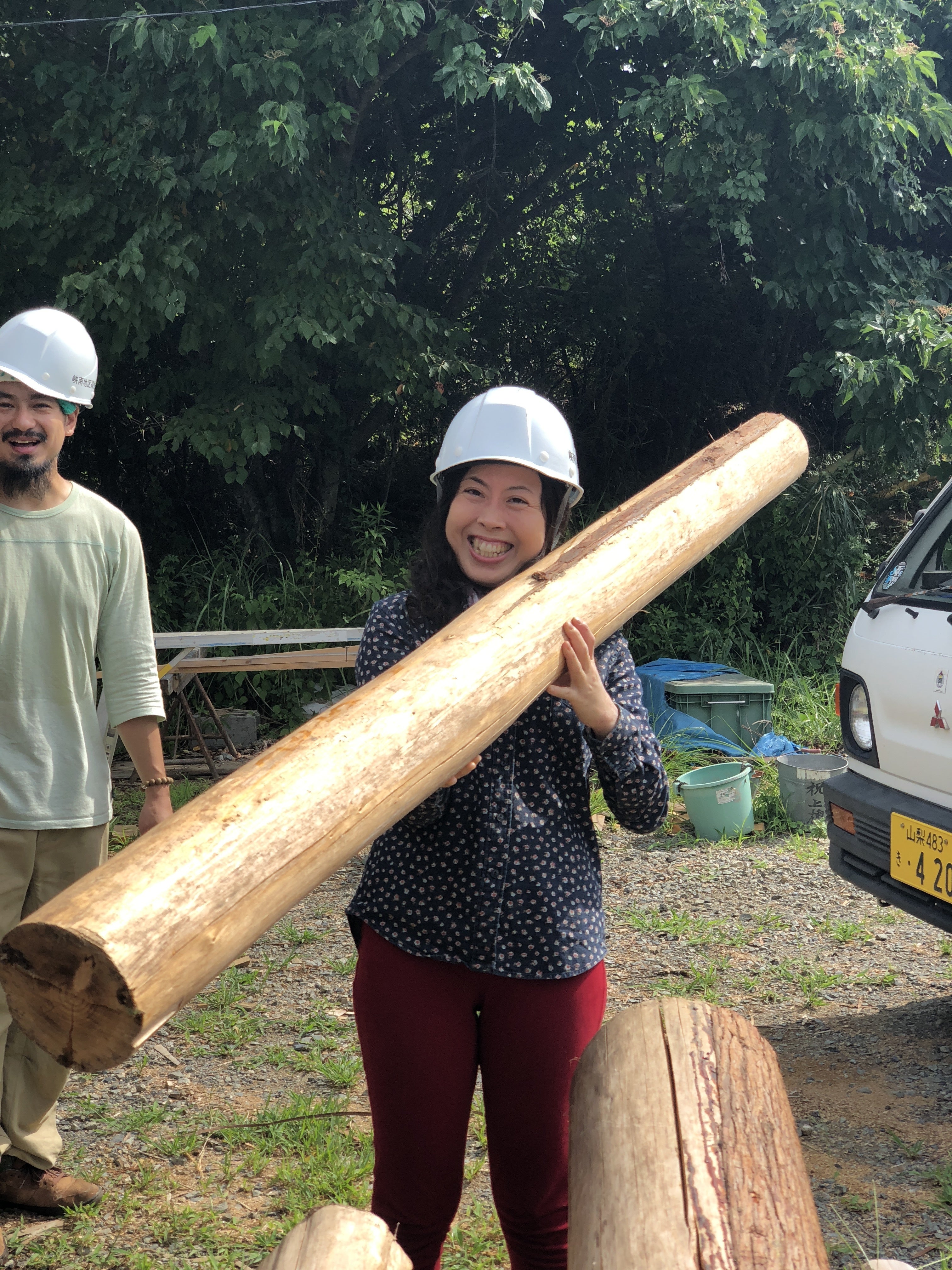 乾いた木は水分が抜け、女性でも担げるほどになります。