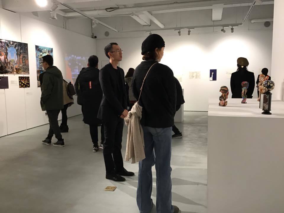 同日後半は内覧会でした。日本のオープニングパーティは作家とのおしゃべりや食がメインで、時折作品をあまり見ていただけないこともあります。が、今回は嬉しいことに大勢のお客様が思い思いに作品と向き合ってくださいました。特に越後さんの繊細なドローイングや金原さんの大作など、やはり手の跡が残る作品は親しみやすいようでした。白濱雅也の不思議な祭壇風の展示も人気でした。