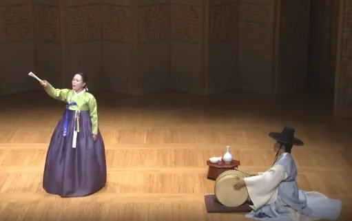 パンソリは、一人の唱者が、伴奏のプク(太鼓)の合いの手に合わせ、物語を歌とふり、セリフで展開する「語り歌」。「春香歌」は、両班の息子李夢龍と美しい春香の愛を描く。春香を狙う悪徳役人、出世して春香を救う李夢龍のどんでん返しというストーリーが絶大な人気を誇る。
