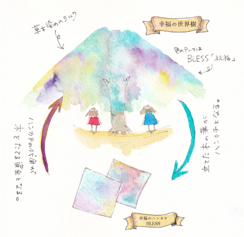 “幸福の世界樹”から『幸福のハンカチ BLESS』ができ、届けられるという循環