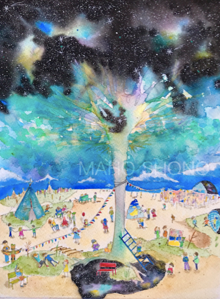 “幸福の世界樹”の下には、MahoShonoの作品が飾られます