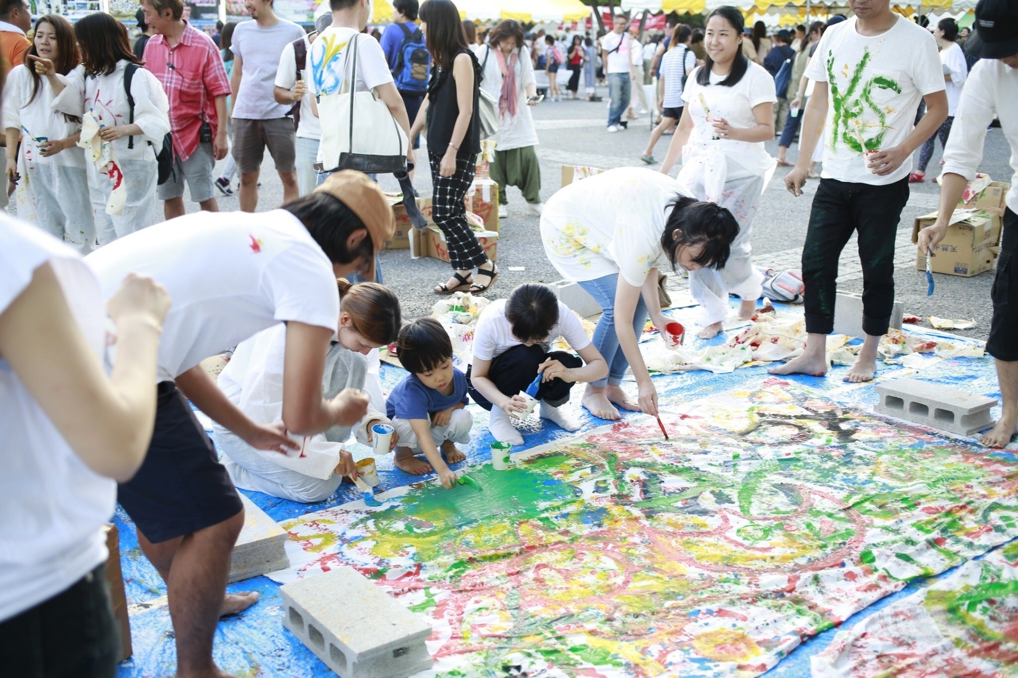 道ゆく人と制作した巨大アート。沖縄平和記念堂へ奉納されました。
