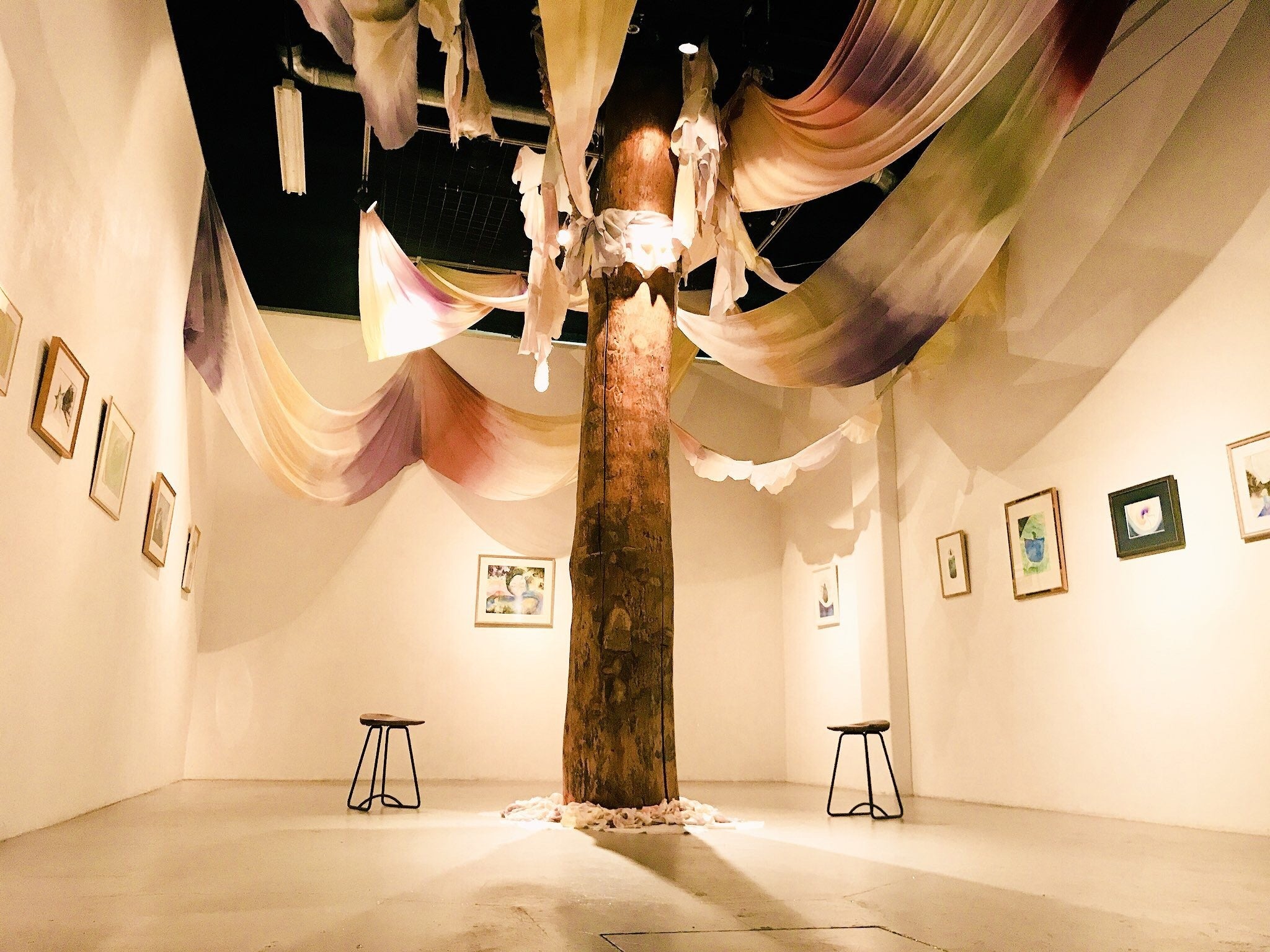 世界樹の周りには、20点以上のMahoShonoの色や絵が展示され、今回初展示となる新作も見ることができます。