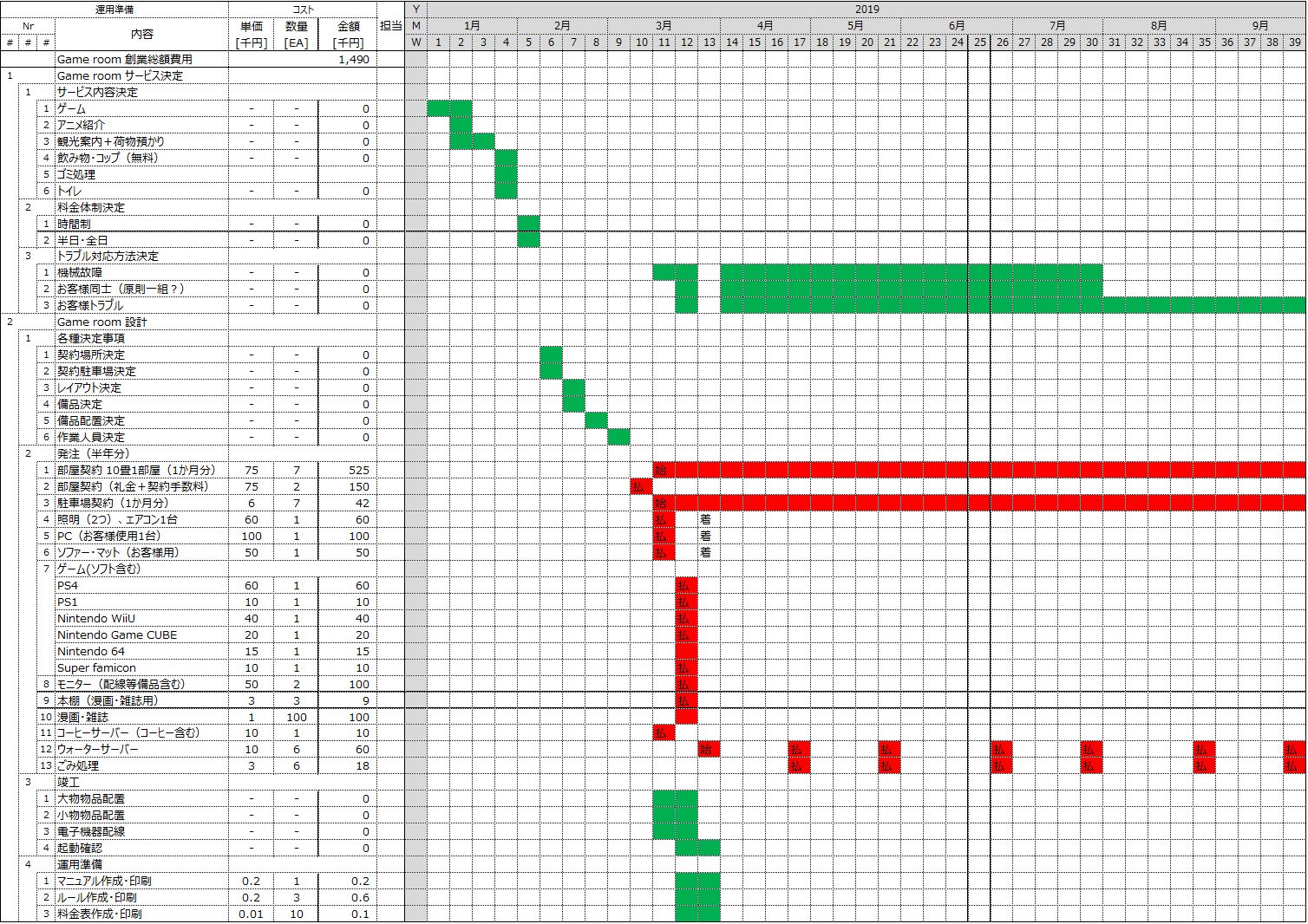 ⓪Game roomの開設(設計・発注・運用ルール作成)
