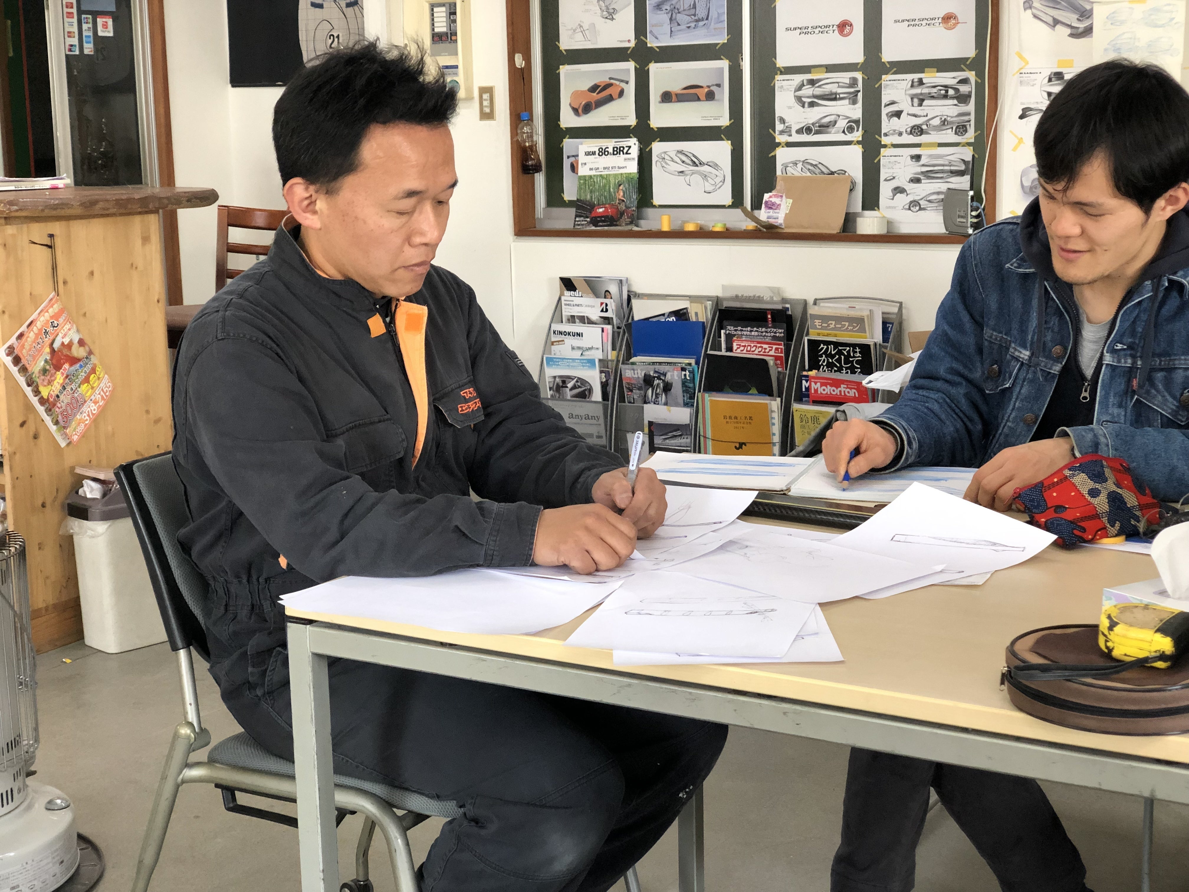 そこで、ちょっと作り変えよう!と思案を始めました。僕とエクステリアデザイナーの(鈴木)健斗と二人で。健斗は、M02t(ロータスシャシーのオリジナルスポーツカー)の時から一緒にものづくりをやっているメンバーです。