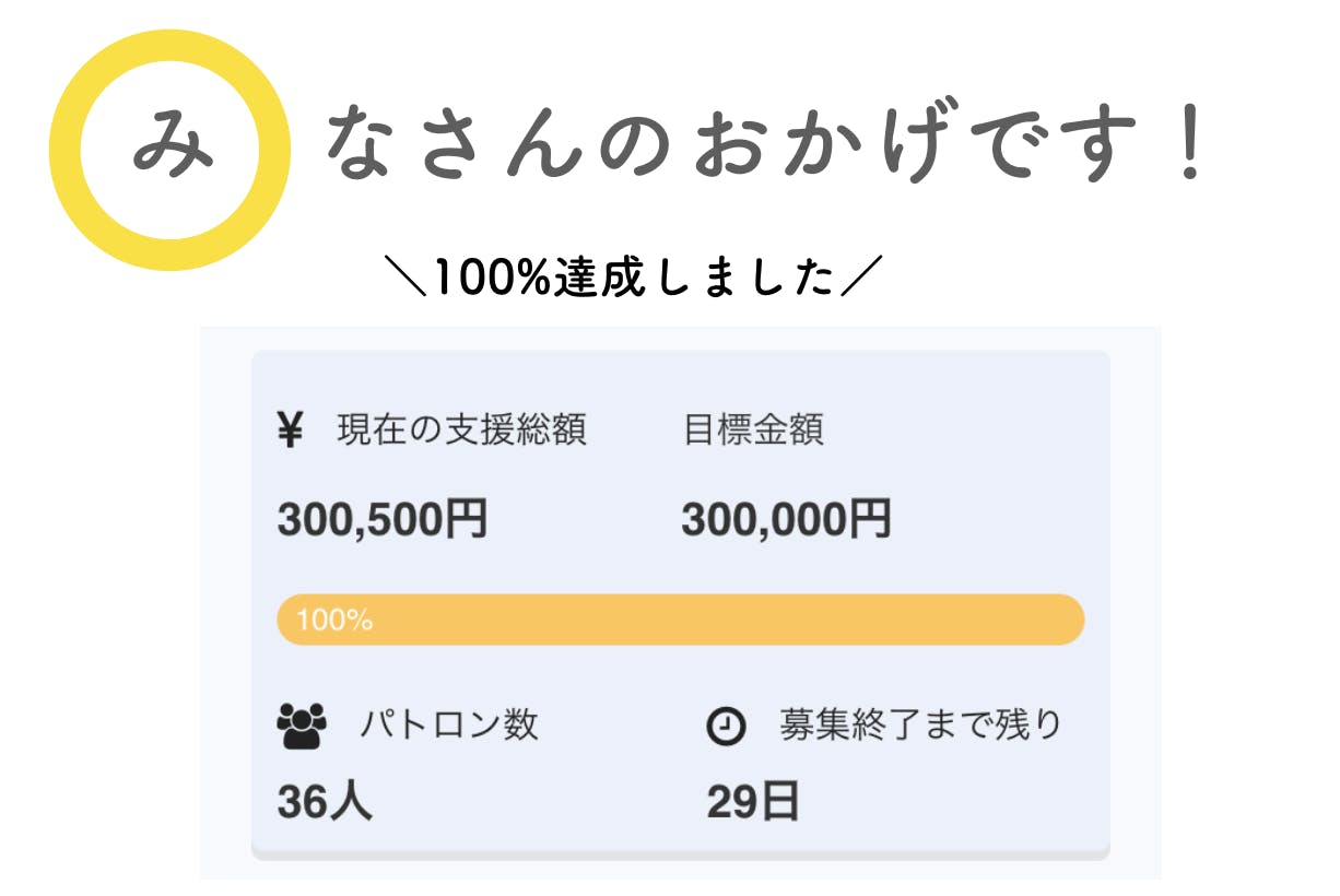 プロジェクト開始から10日、皆様のご支援のおかげで目標100%達成しました!