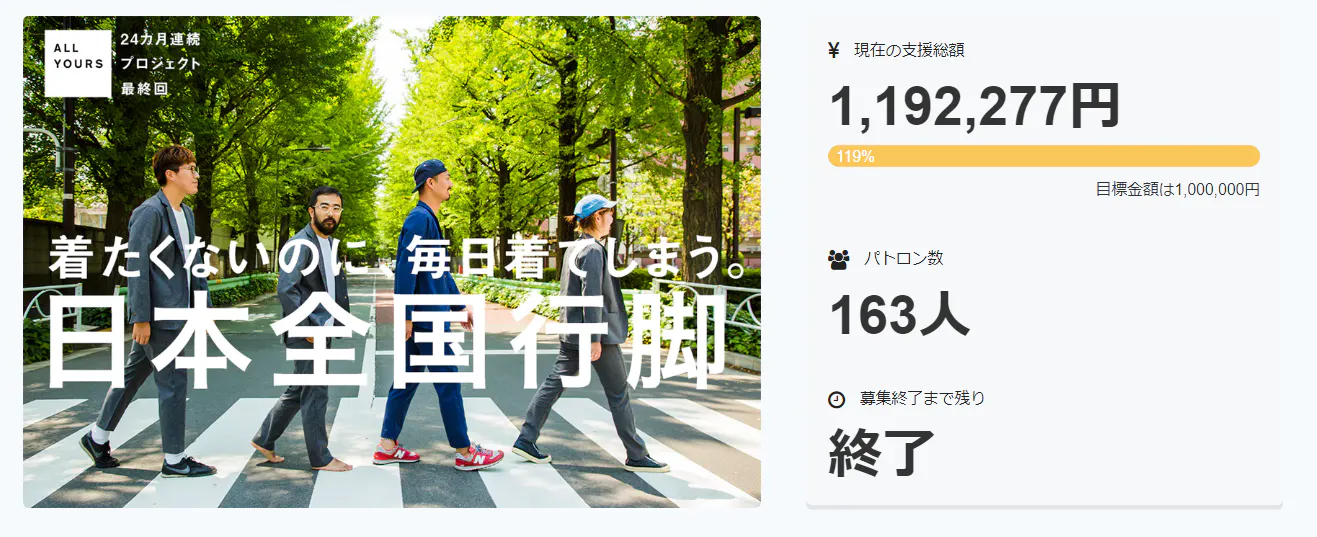 「24ヶ月共犯者募集の最終回!クラファン日本一の服を広める全国ツアーに参加しよう!」