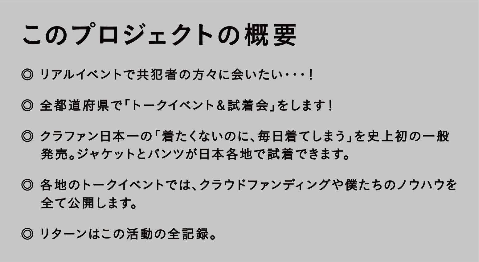 そこで、今回のプロジェクトはリアルな現場に飛び出してみなさんに会いに行きたい!と思いこのプロジェクトを立ち上げます。