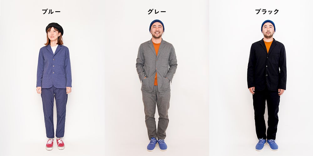 販売する「着たくないのに、毎日着てしまう。」ジャケットとパンツは、こちらの3色になります。