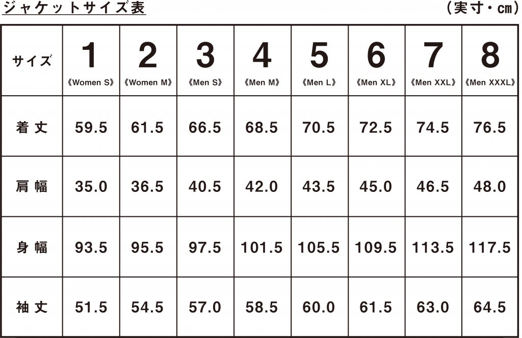 パンツ・ジャケット共に小柄な方から大柄な方まで着て頂けるように、全8サイズをご用意しています。あなたにピッタリのサイズが見つかるはずです。