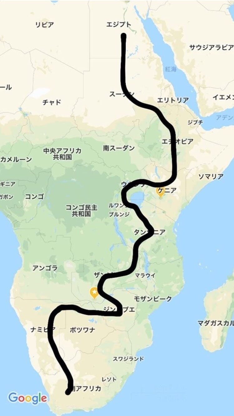 エジプトのカイロから東回りのコースで南アフリカのケープタウンに向かうコースです。