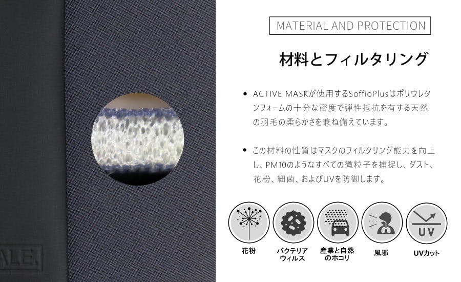 必要な時にあなたを守り、また周りへの気配りのエチケットアイテムとしてもスタイリッシュにあなたをサポートしてくれるこれまでにない革新的なデイリーユーズな高性能マスクです。