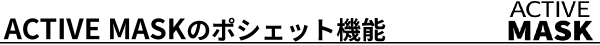 ACTIVE MASK(アクティブ・マスク)は、マスクを折りたたむとポシェットカバーにスッポリ収めた状態で安全にカバンやポケットに入れて持ち運べる収納一体型デザインです。