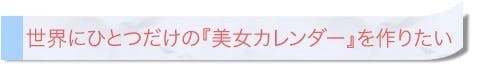 私たちは、このプロジェクトの最大の目標として『美女カレンダー』の作成をしたいと考えています。