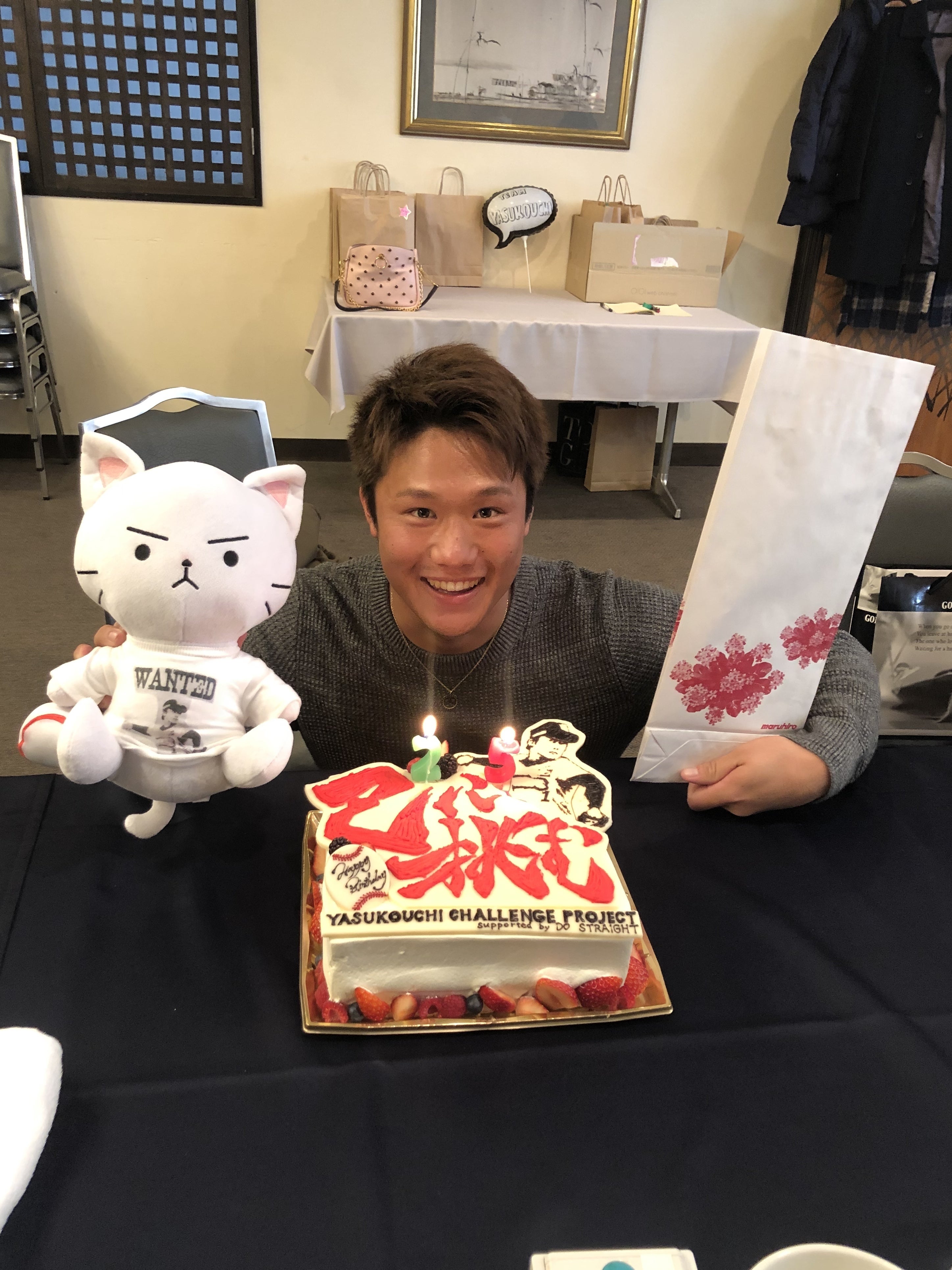 プレゼントもたくさんいただき、嬉しそうな安河内。最高の25才のスタートとなりました!