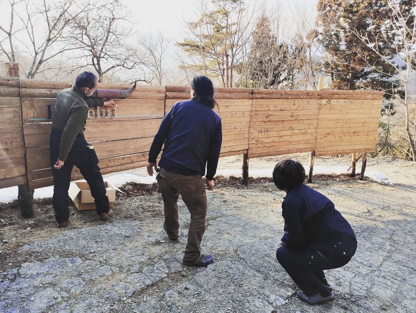 ついに晴家村のメインの看板の取り付けが終わりました!