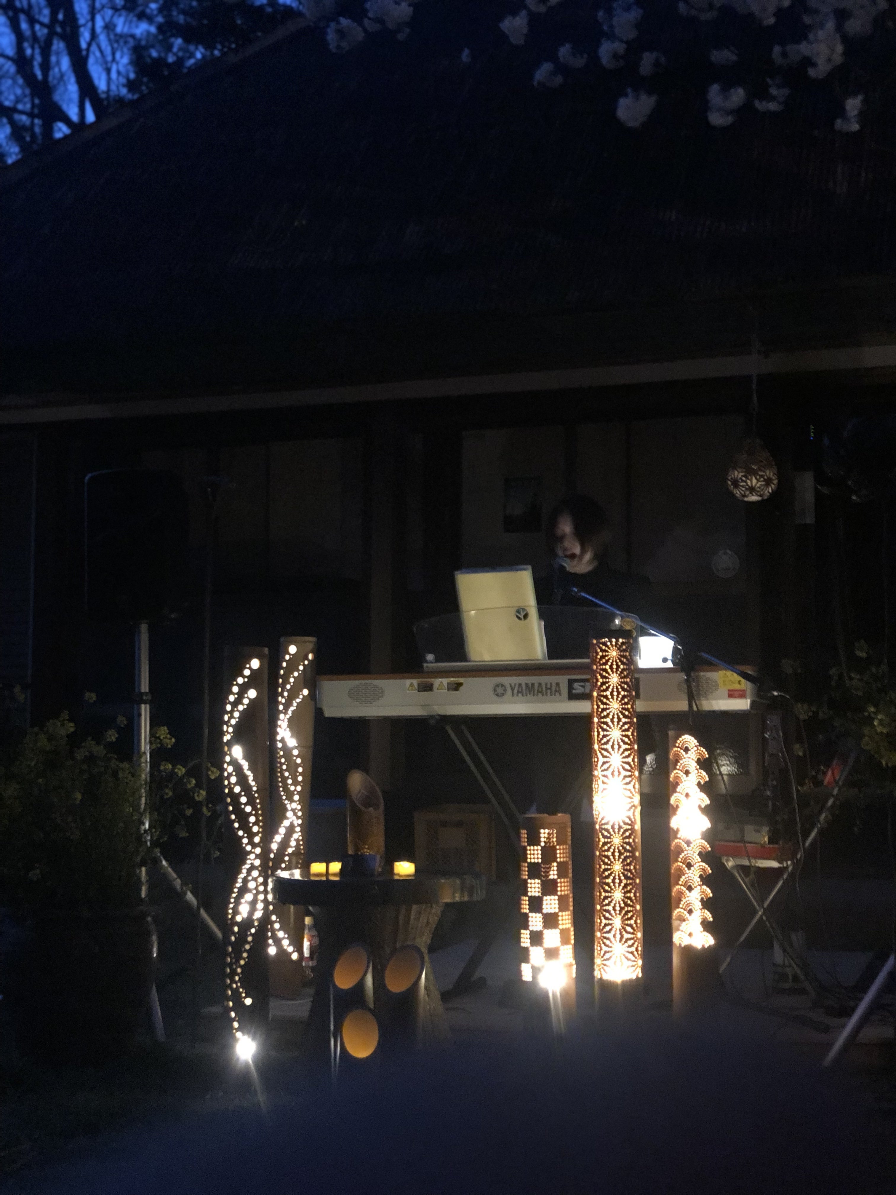 今回は特別に前夜祭でも、地元山梨県のシンガー「ちづほ」さんがライヴをして下さり、竹あかりを作るアーティストの「竹王子」さんがライティングしてくれました♪
