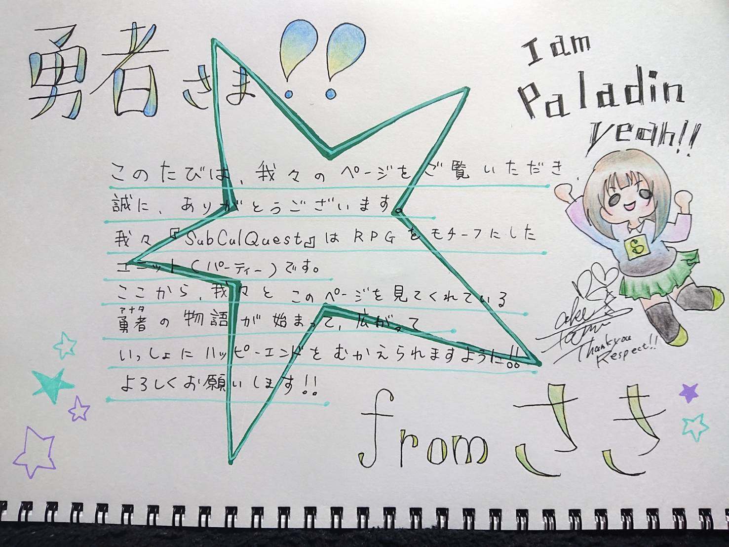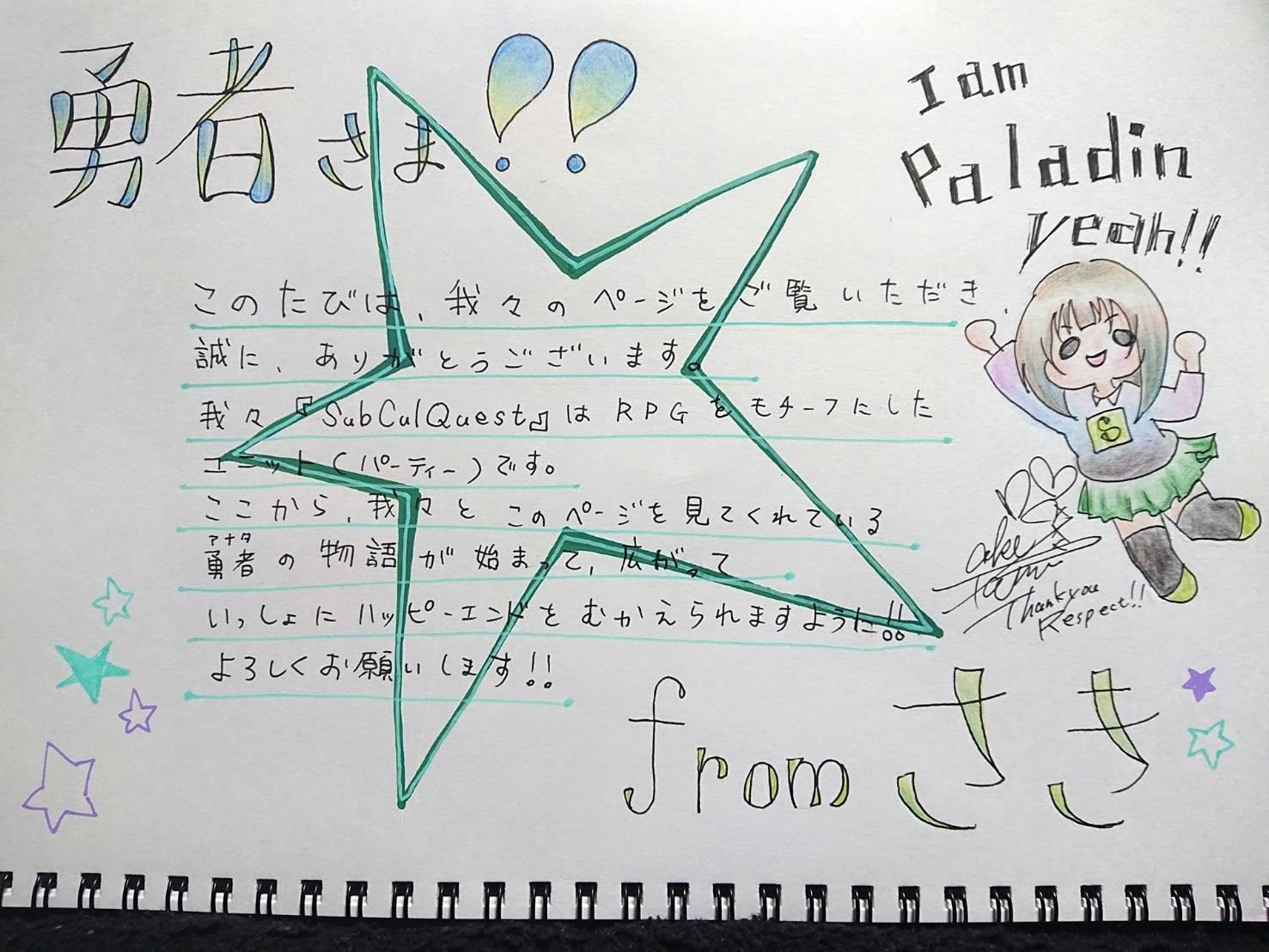 RPG系ユニットSubCulQuest(略して『サブクエ』) は、勇者の皆様(パトロン様、ファンの皆様)と共にたくさんのバトル(LIVE)を共闘し、ボス戦中野サンプラザのステージを目指すパーティーです。