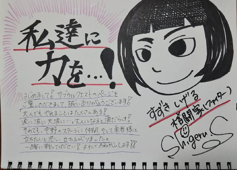 我々は《大人だからこそ全力で夢をつかむ必要がある!!》を合言葉に、『THE BATTLE SubCulQuest VS 中野サンプラザ』と題し、2020年の夏に中野サンプラザのステージに立つべく結成されたRPG系ユニットです。