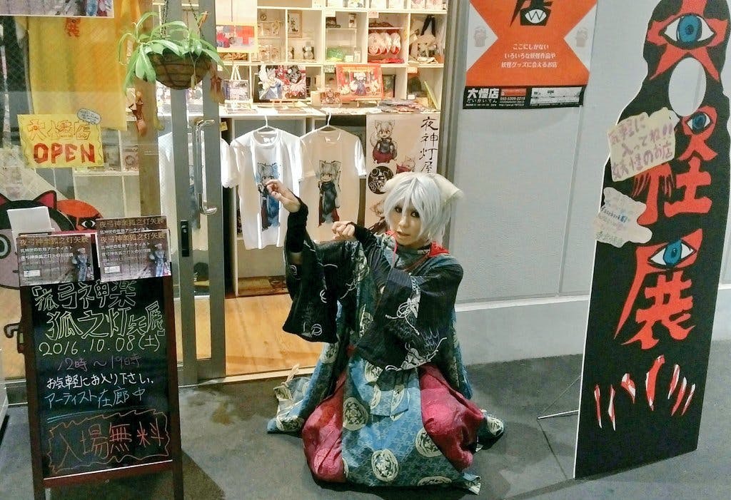 2016年10月8日(灯矢の日)には初の単独個展となる「夜弓神楽狐之灯矢展」を大怪店様で開催させて頂きました