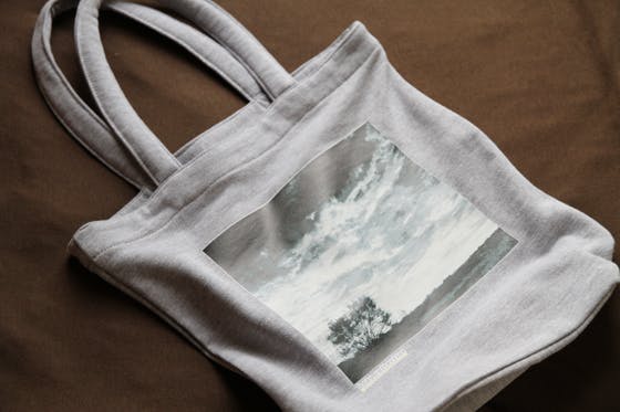 トートバッグは、高さ35cm×横幅24cm、底マチ11cmのスウェット生地。