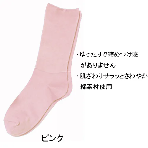 しめつけ感がなく、とてもゆったり。綿素材使用で、肌ざわりさわやか。(消臭加工糸使用)