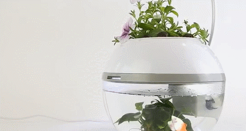 Herb&Fish Xは水の入れ換えも水槽部がPC素材で作られているのですごく軽くて楽々、ガラスではないので割れる心配もありません。そして植物への水やりは一切不要。魚にエサを与える以外はほとんど何もしなくていいのです。