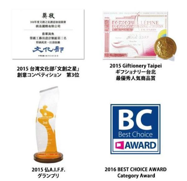 2015年にはGiftionery Taipei 2015 Most Popular Product Award に選ばれ、同年ASSOCIATION DES INVENTEURS ET FABRICANTS FRANÇAIS 2015 にも選出。