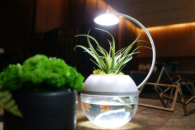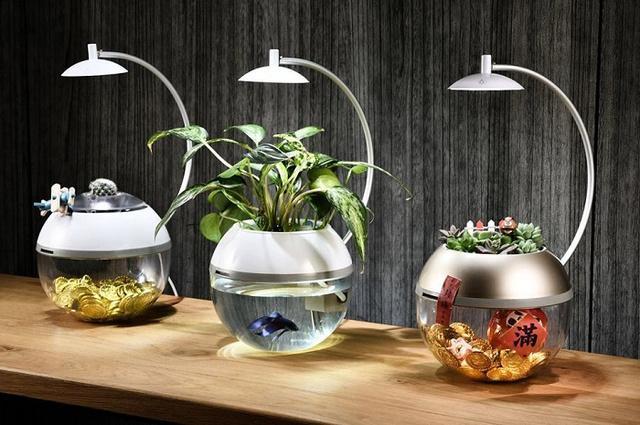 幾度も試行錯誤を重ね、改良し続けた魚と植物が共生できるAquaponics(アクアポニックス)を簡素化した技術や宇宙(自然との共生)をイメージしたデザイン、そして優しいLEDの美しさ。