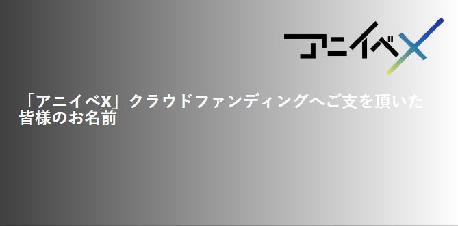 今回のご報告は「アニイベX クラウドファンディングへご支を頂いた皆様のお名前」ページ掲載についてのお知らせとなります。