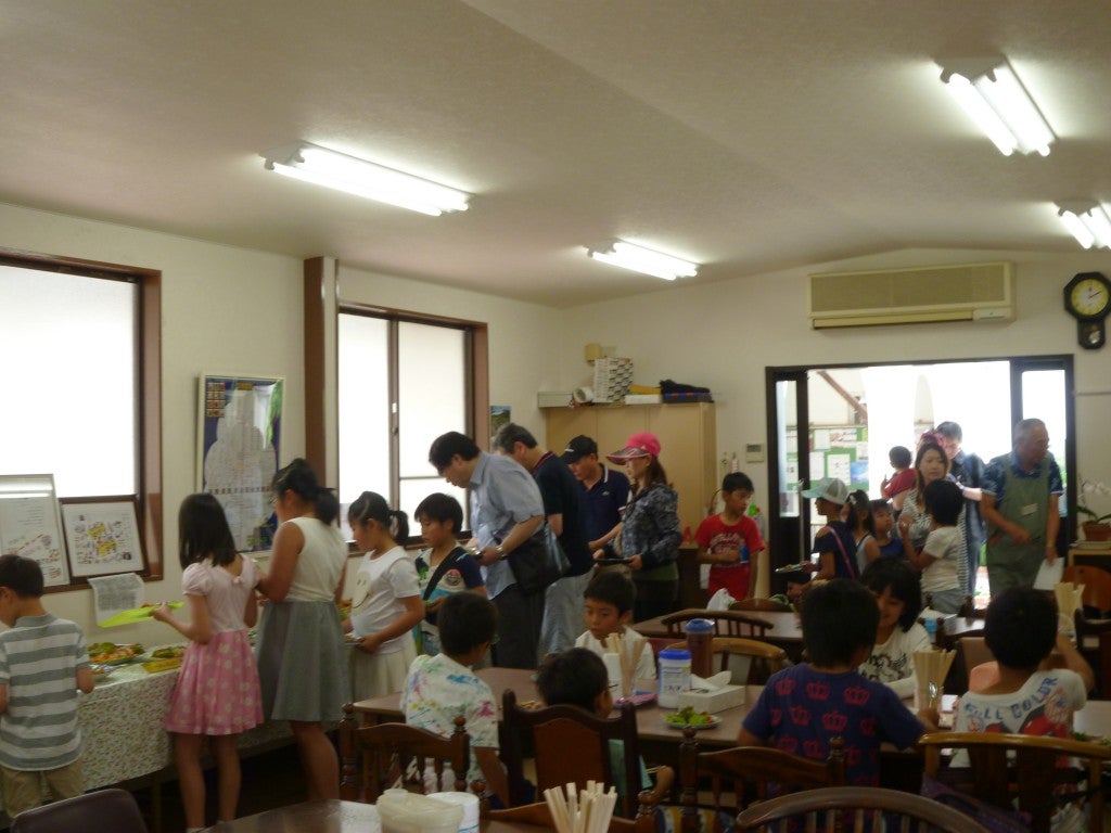 ”みんなで食べたらおいしいね”を合い言葉に、大人も子どもも様々な世代の人達が大きな部屋に集い、食を通した交流が行われています。スタッフが準備を始める9時くらいに来て「お手伝いする!」という小学生の常連さんもあり、スタッフのやさしい心づかいが浸透しています。ずらりと並ぶたくさんのおかずをバイキング形式でいただくスタイル。「このおかず、初めて食べた!」「これはどうやって作るの?」子どもたちのワクワク感と好奇心。いろいろな人とふれあい、日常に則した新しい体験をする事でぐんぐん育っています。