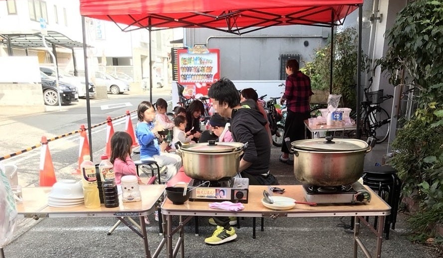 中道通りにおいしい香りが立つ日、開放的で立ち寄りやすい雰囲気の食堂です。部活動帰りの中学生、小さな子どもを持つお母さん、公園で午前中いっぱい遊んでおなかをすかせた子どもたち…みんなが一緒に食べるご飯の味は格別です。寂しくご飯を食べる子どもが少しでも減ってほしい!と活動しています。