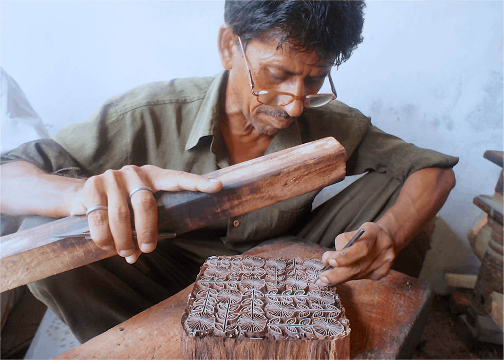 私が初めてインドに訪れたのは2008年でした。インドの北東部のジャイプールという場所の工房で、インドの伝統技法『木版プリント』に偶然出会いました。