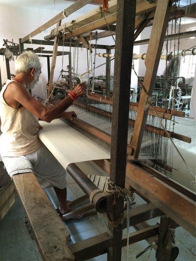 電気で動く機械もありますが、この歴史ある木製の機械で作られた生地こそが最高級だと作り手の彼らは知っています。だからこそ、彼らは今でも変わらずに生地を折り続けています。手織りされた生地は柔らかく、空気をたくさん含んでおり、この素晴らしい質感は機械では再現できません。