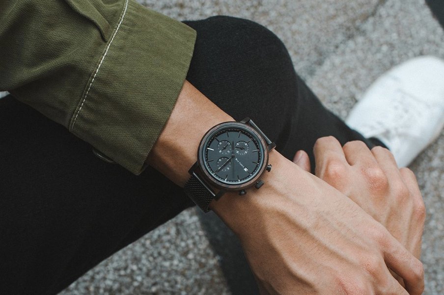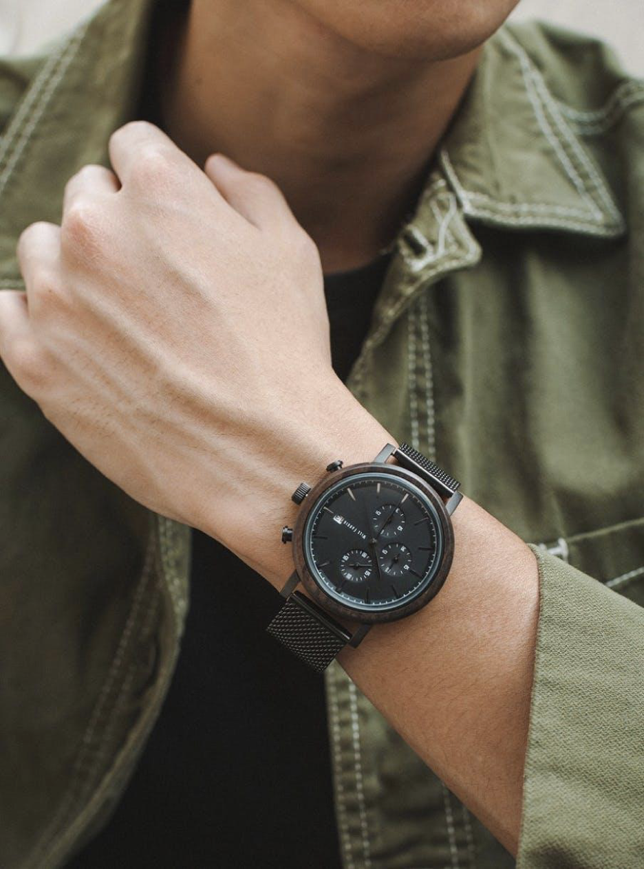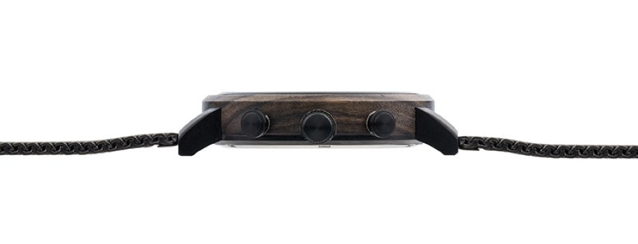 この4年間を通して、多くのお客様と関わることができ、またご好評いただき嬉しく思います。「防水性やたくさんの機能を増やして欲しい」というアドバイスのもと、1年前からより耐久性のあるウッドウォッチの開発に取り組みました。試行錯誤を繰り返し、木材とステンレススチールを組み合わせて作り上げた、進化したウッドウォッチ Chrono Black Wood collectionの製作に成功しました。