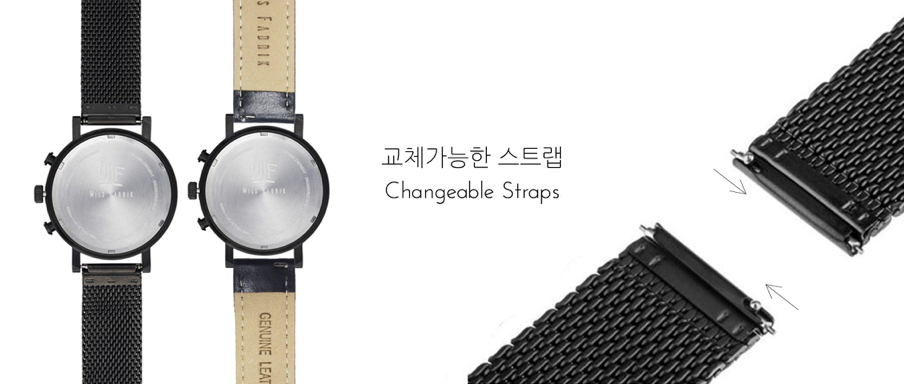 Chrono Black WX & WL on Camp Fireは最新モデルで、簡単に取り外し可能なレザー又はメッシュのバンドが付いています。スリムなメッシュバンドは様々な形に曲げられるため、腕にフィットします。レザーバンドはドレッシーに、メッシュバンドはカジュアルに見映えを変えることが可能で、あらゆるシーンや装いに合わせて取り替えることができます。