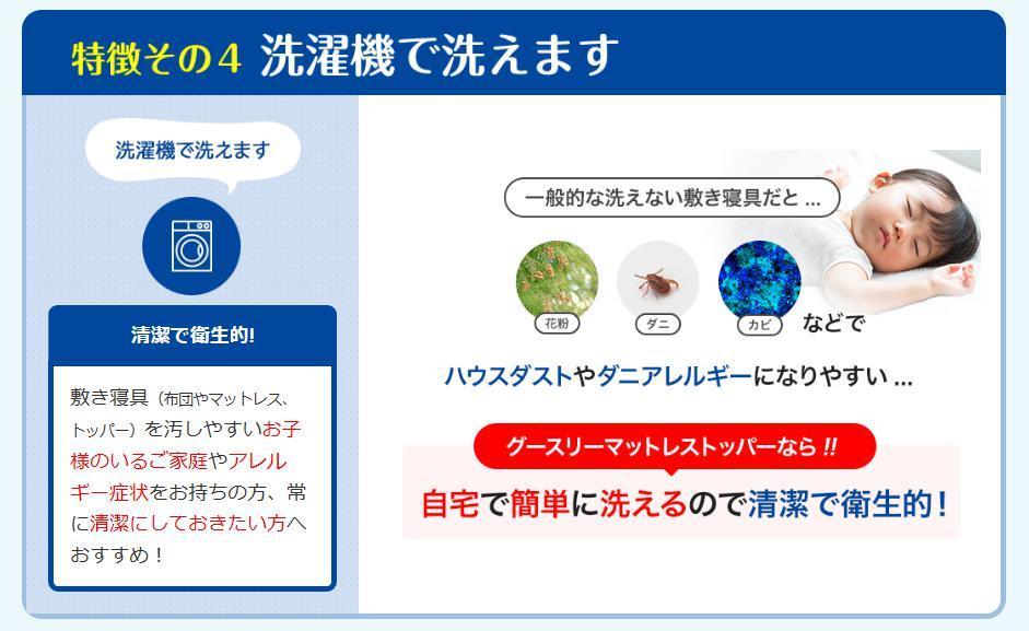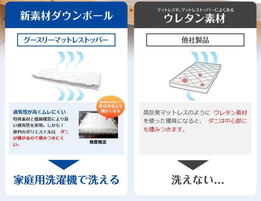 しっかりと洗濯機で丸洗いをして、汚れを落として毎日きれいな清潔なグースリーマットレストッパーで気持ちのいい快眠を味わってください。