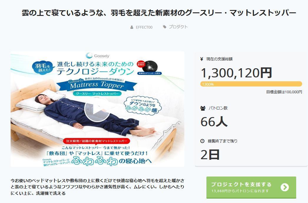 グースリーマットレストッパープロジェクトが 残り5日を切りました!